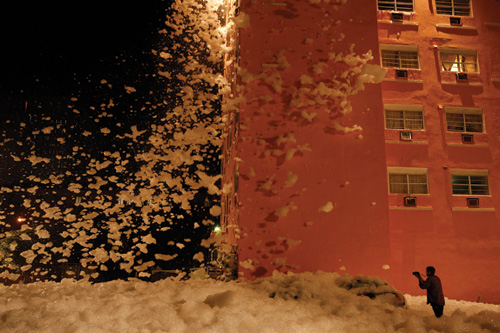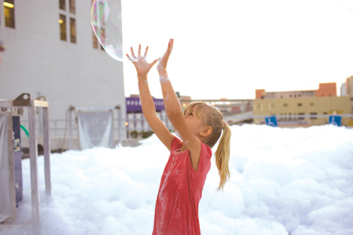 Voici une idée de la prochaine publicité, intitulé "Foam City" ( = "Ville de Mousse") pour l'imagerie numérique, notamment les derniers modèles de α, Handycam et Cyber-shot.